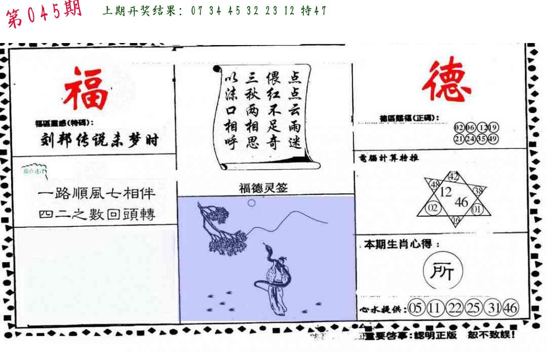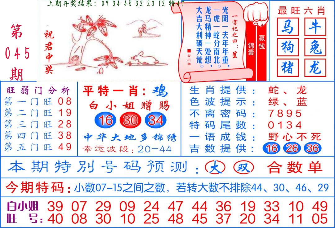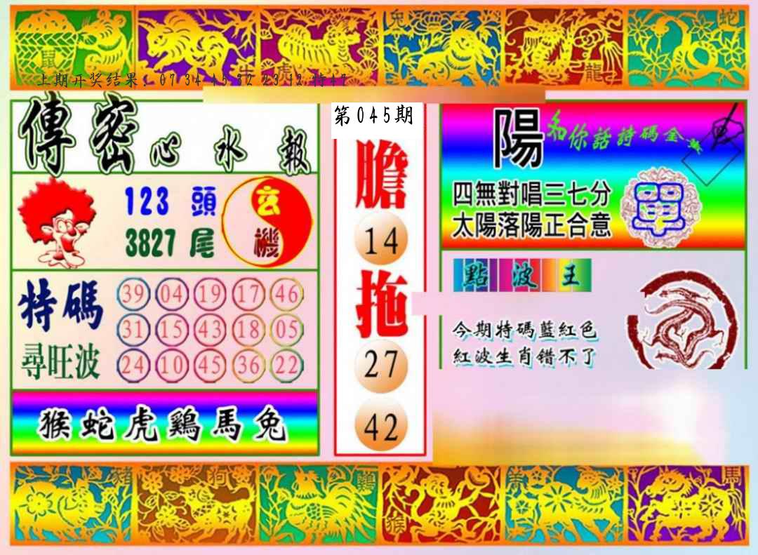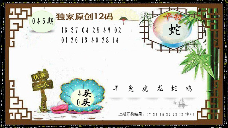 | 045期推荐五肖: 鸡牛兔虎龙 ~~稳准狠 |