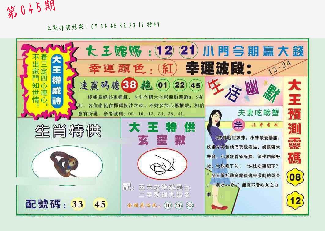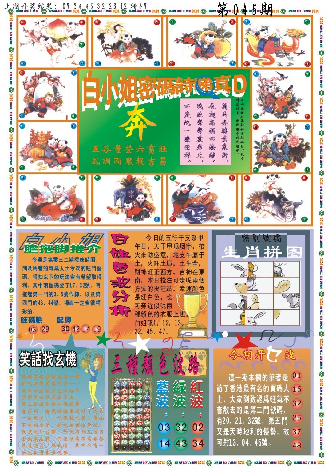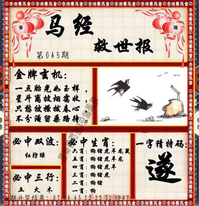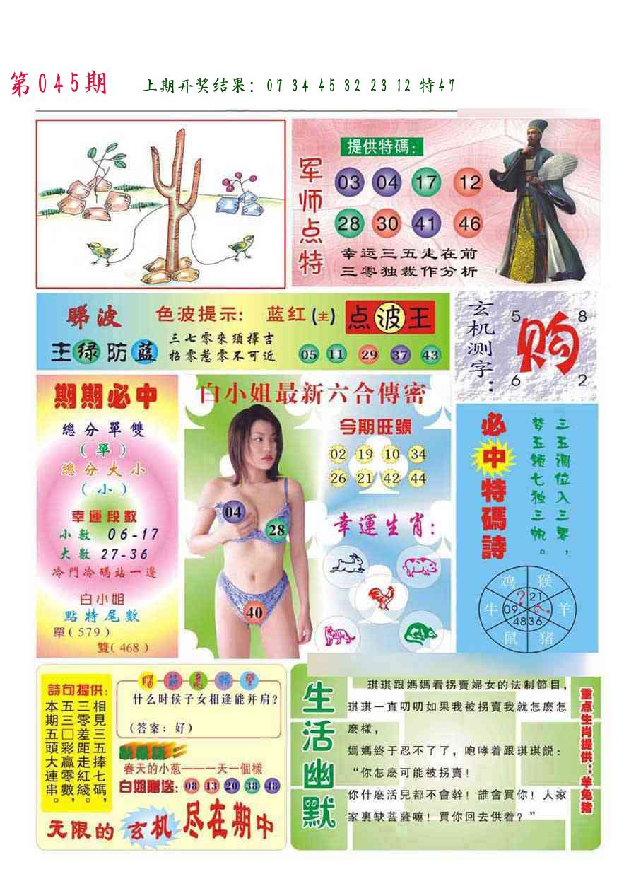 | 045期推荐五肖: 鸡牛兔虎龙 ~~稳准狠 |