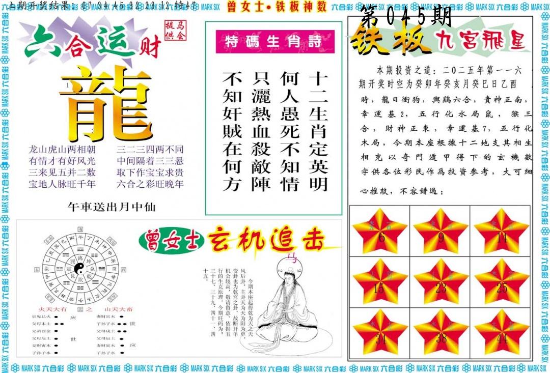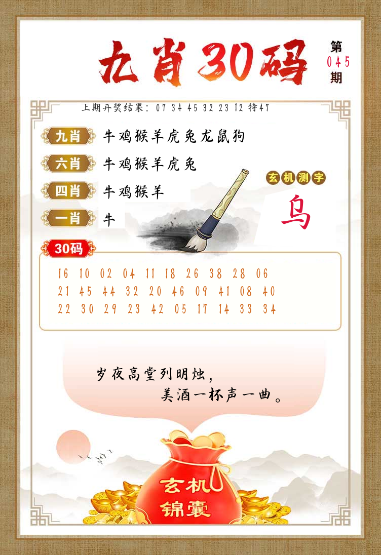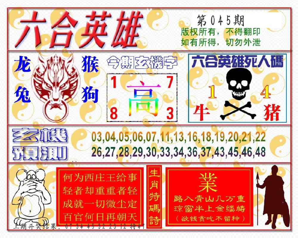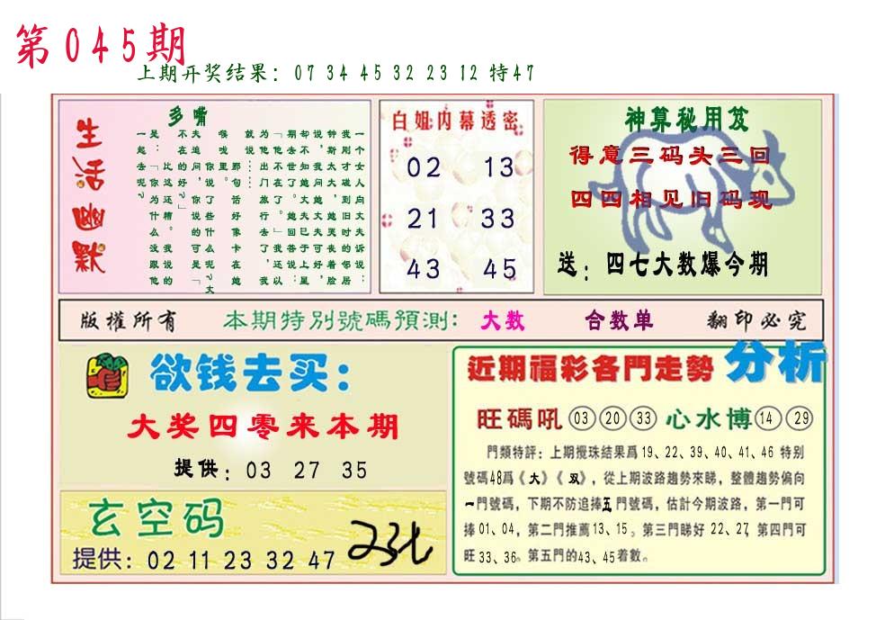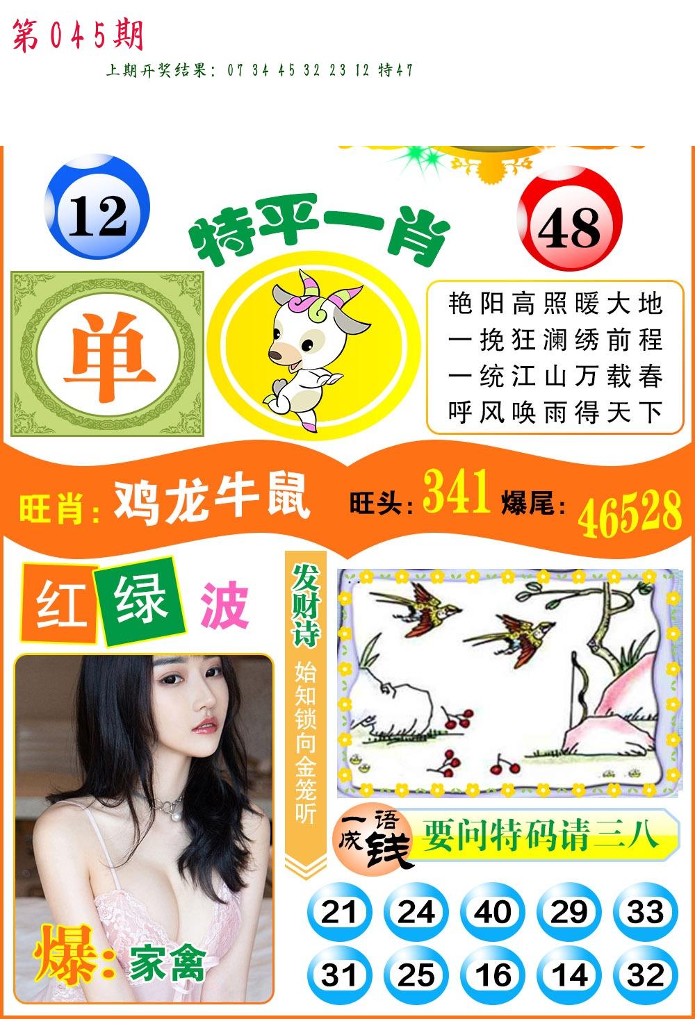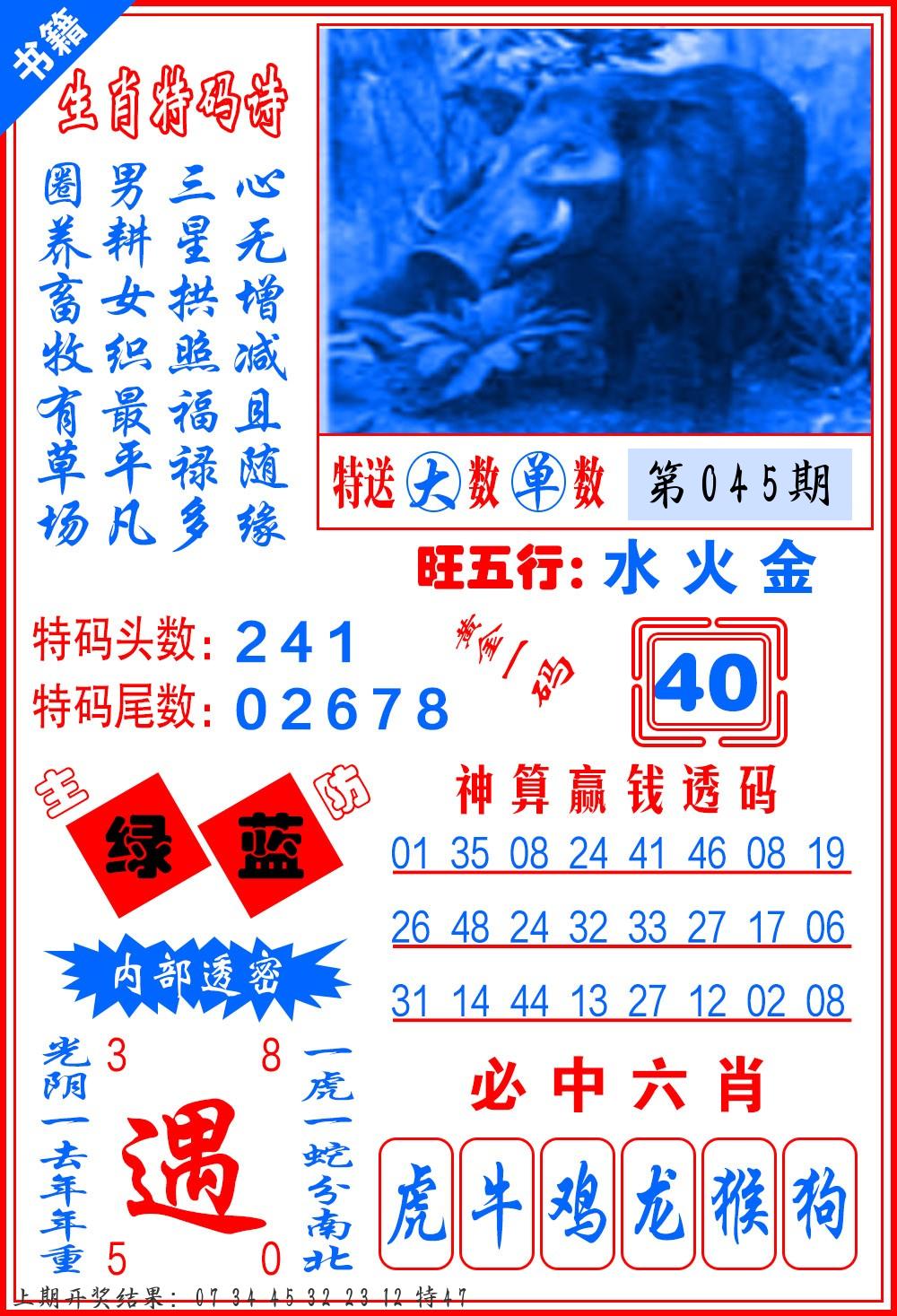 045期绝杀1.肖1.尾 【牛肖7尾】 开 ??????? |