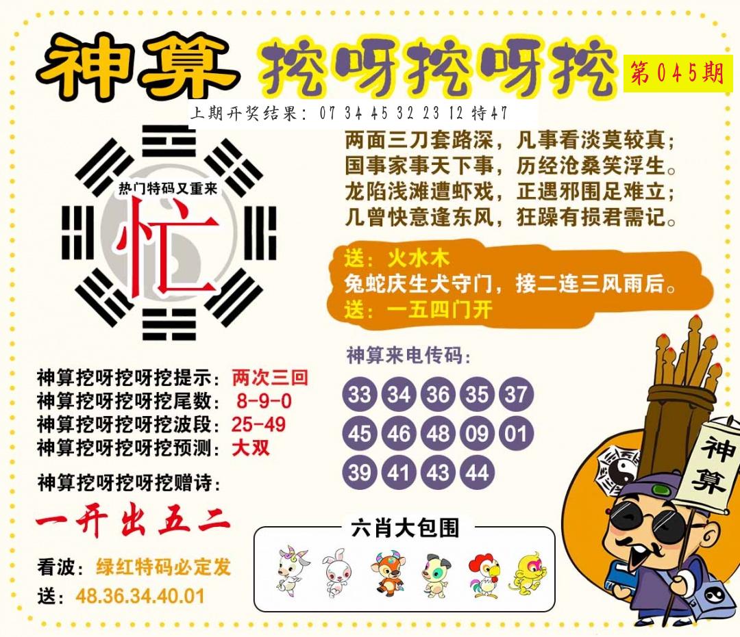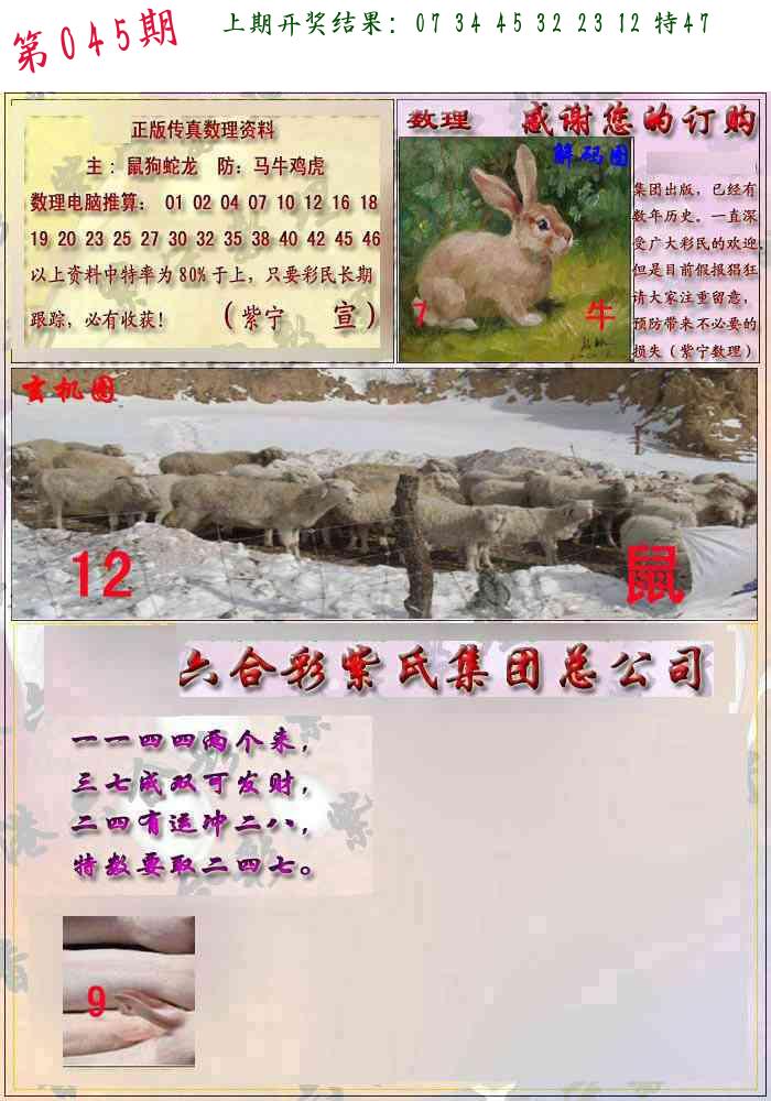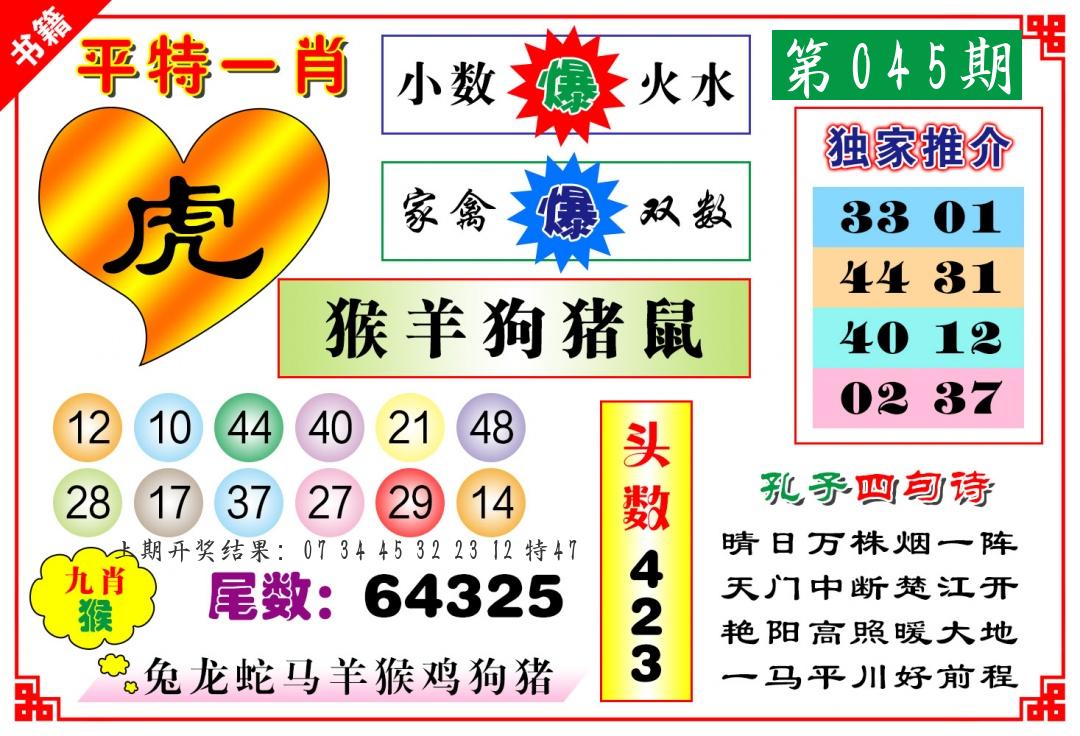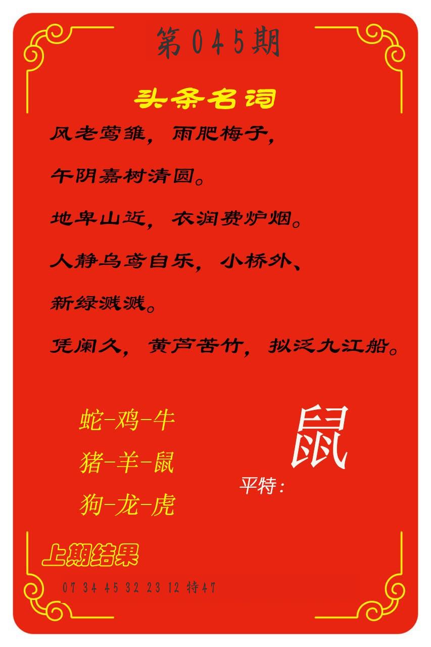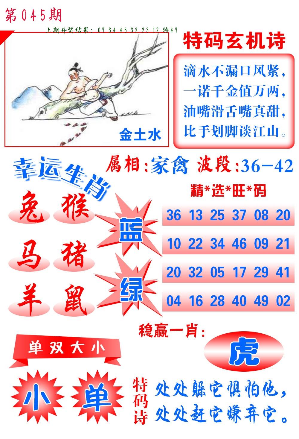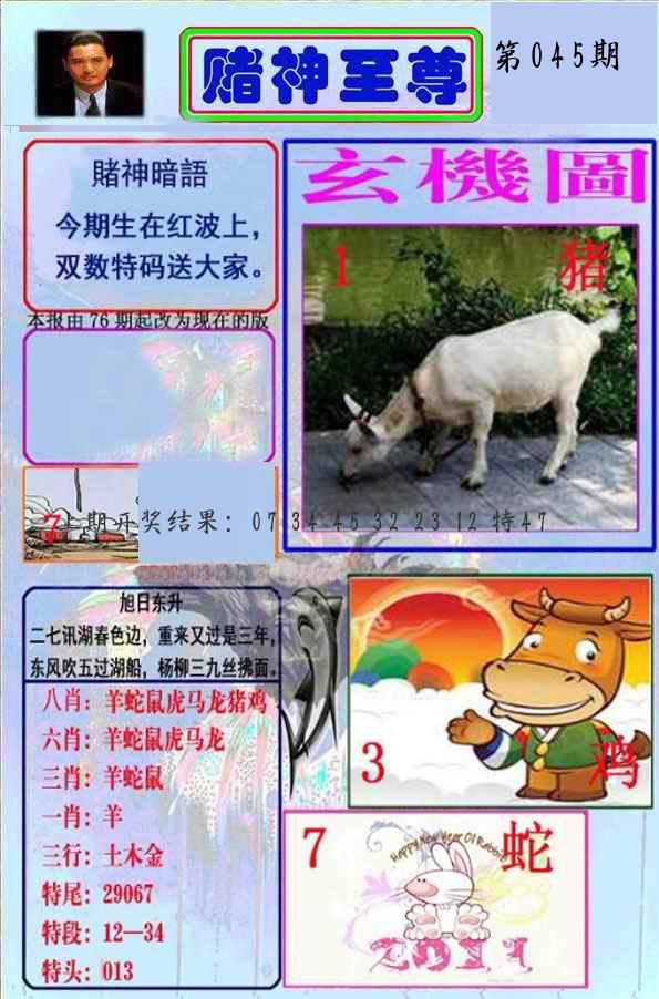 | 045期推荐七肖: 鸡牛兔虎龙猪鼠 -平均压 |