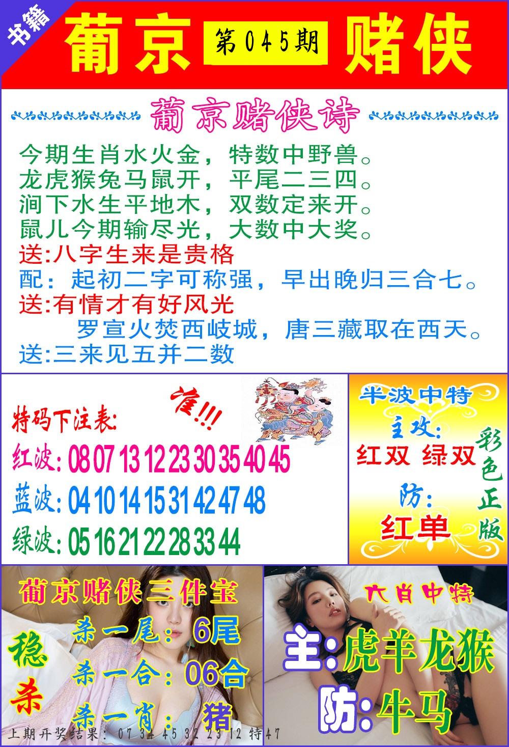 041期绝杀一波 【蓝波】 开 46猴对 |