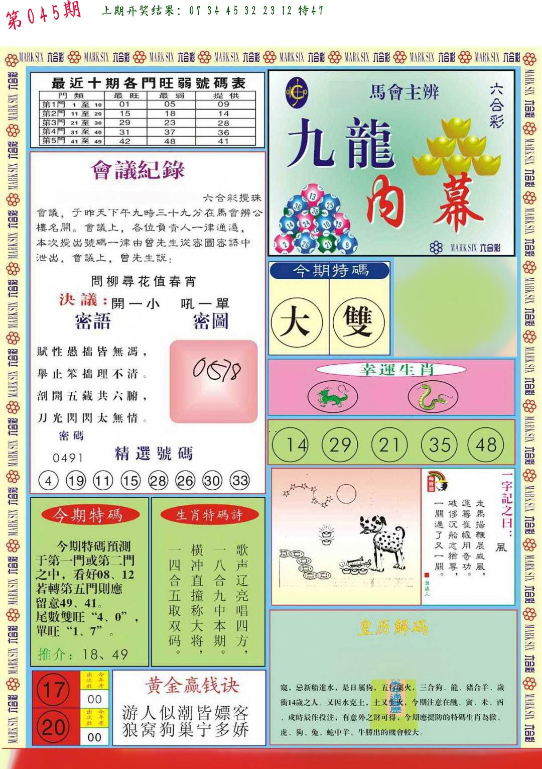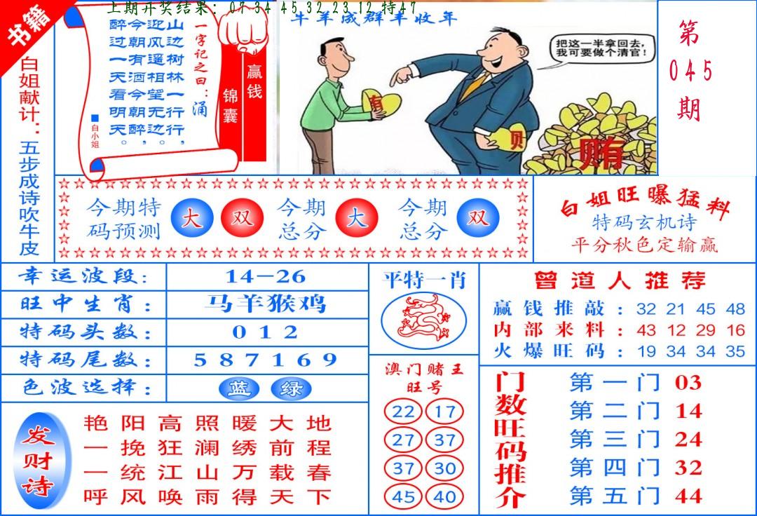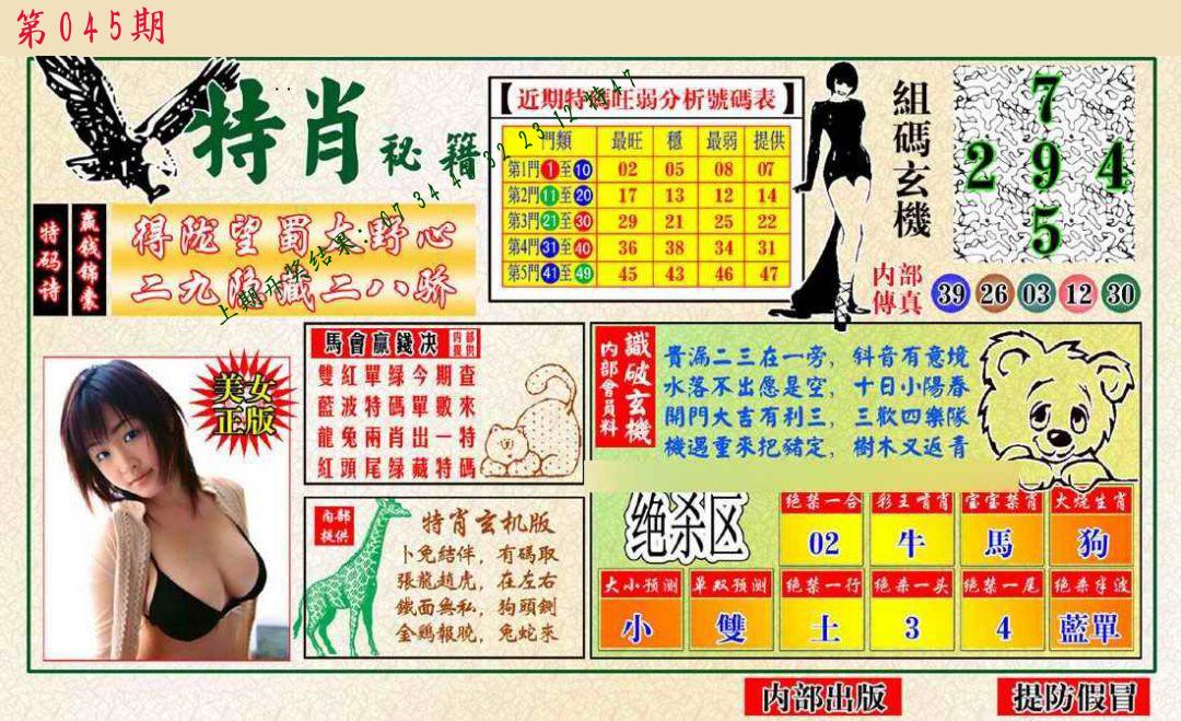 准确率高达90%,期期挑出12-18码 ____________★____________ 【九肖】 045期【牛猴狗马鼠兔猪龙虎】开????? 044期【蛇猴鸡兔马虎狗鼠牛】开47羊错 043期【鼠牛猪猴羊狗鸡蛇虎】开06鼠对 042期【鸡猴羊猪马鼠蛇龙虎】开25蛇对 041期【鸡羊虎马牛狗猪蛇鼠】开46猴错 040期【龙虎兔牛鸡马蛇羊狗】开09鸡对 039期【羊龙虎猴鸡鼠马兔蛇】开10猴对 038期【狗兔马龙羊蛇猴猪鸡】开05牛错 ____________★____________ 【四头】 045期【1-3-4-0】开?????? 044期【2-4-1-0】开47羊对 043期【2-4-3-0】开06鼠对 042期【0-2-3-4】开25蛇对 041期【4-3-0-2】开46猴对 040期【2-1-3-0】开09鸡对 039期【3-4-1-2】开10猴对 038期【4-3-2-1】开05牛错 ____________★____________ 【四行】 045期【金-火-水-土】开?????? 044期【水-木-火-土】开47羊对 043期【金-火-水-土】开06鼠对 042期【木-土-水-火】开25蛇错 041期【金-土-木-水】开46猴对 040期【木-土-水-金】开09鸡错 039期【水-木-金-土】开10猴错 038期【水-金-土-木】开05牛对 ____________★____________ 【七尾】 045期【1-0-9-7-3-8-5】开????? 044期【7-6-2-3-9-5-8】开47羊对 043期【1-4-3-6-9-0-5】开06鼠对 042期【4-2-3-8-1-6-7】开25蛇错 041期【7-8-2-4-5-6-0】开46猴对 040期【4-9-6-3-7-0-8】开09鸡对 039期【8-2-5-0-7-1-4】开10猴对 038期【6-5-8-1-2-0-4】开05牛对 ____________★____________ 【双波】 045期【蓝波+红波】开????? 044期【红波+蓝波】开47羊对 043期【绿波+红波】开06鼠对 042期【红波+绿波】开25蛇错 041期【绿波+蓝波】开46猴错 040期【蓝波+红波】开09鸡对 039期【绿波+红波】开10猴错 038期【绿波+红波】开05牛对 ____________★____________ |