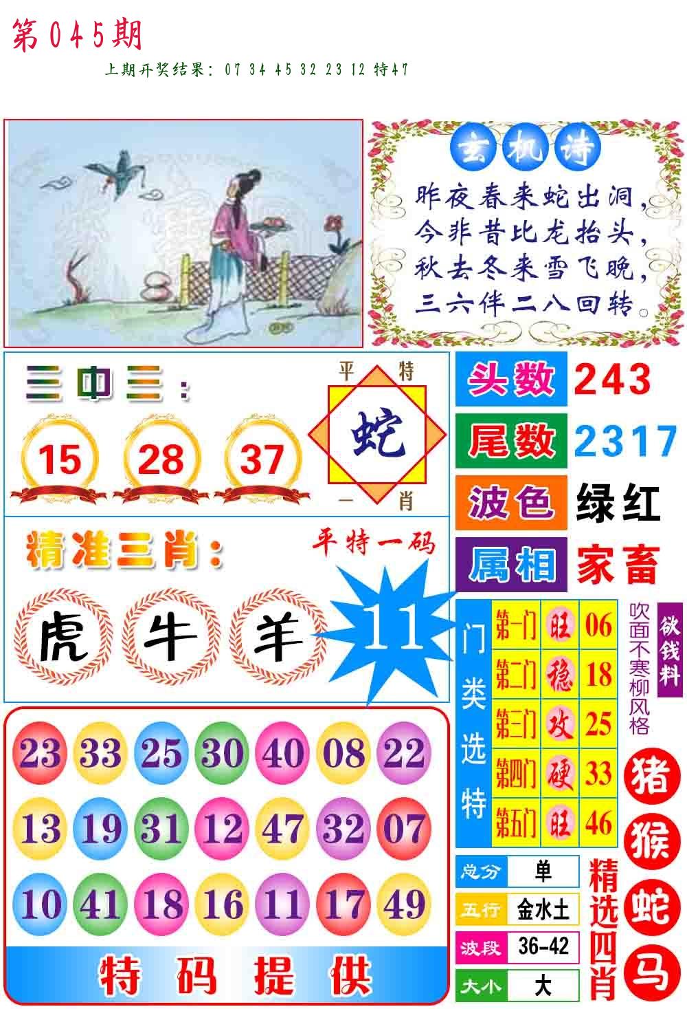 041期 家 【羊鸡马】 野 【蛇龙虎】开 46猴错 |