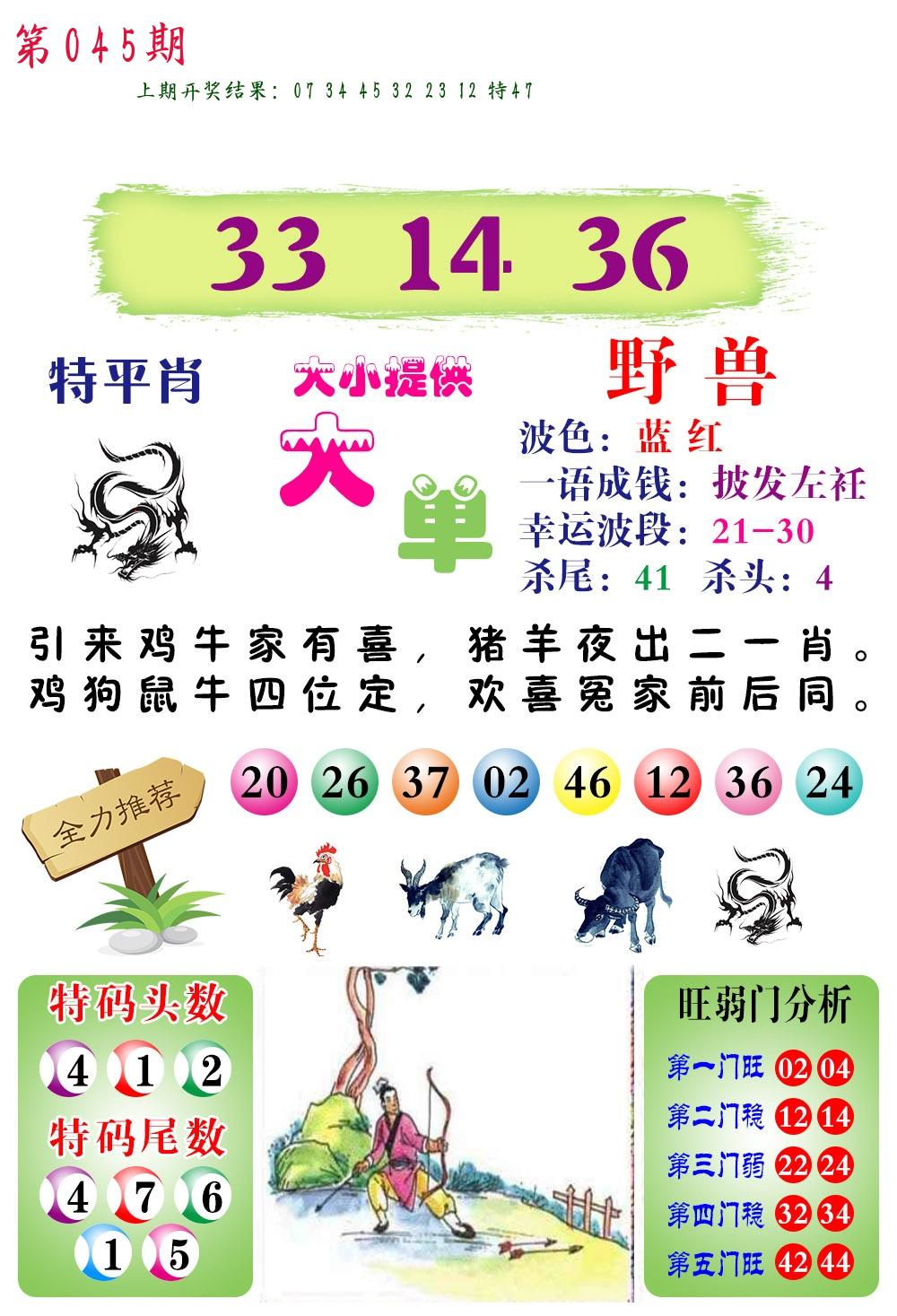 045期家野(2)肖 【野兽+马鸡】 开 ??????? |