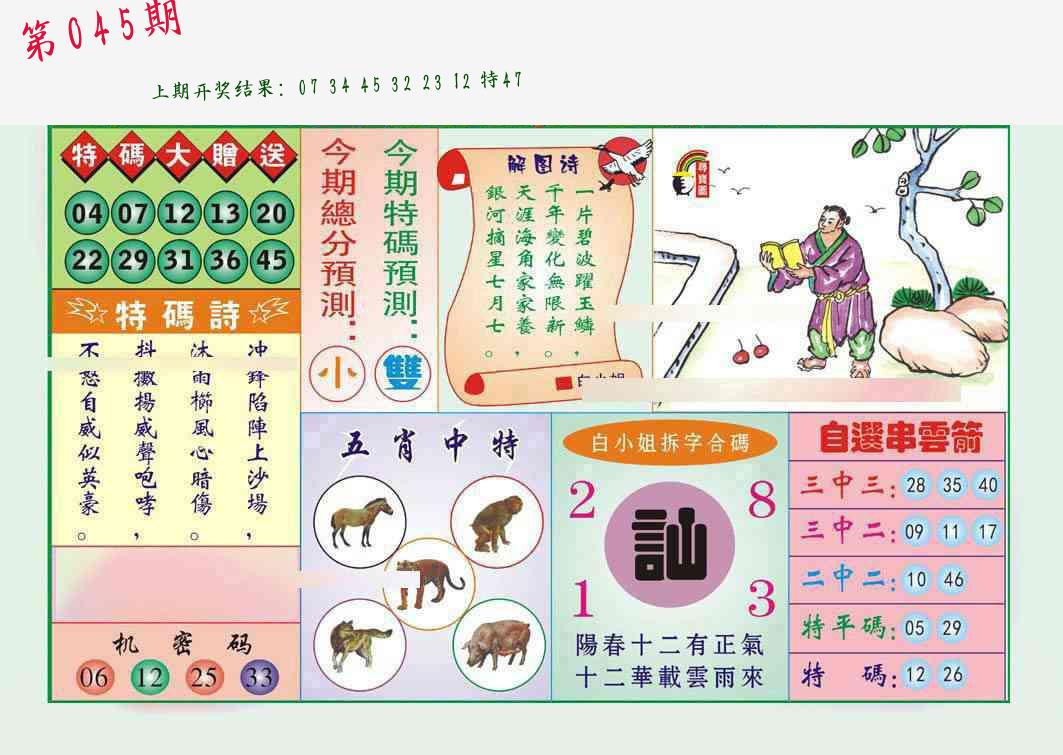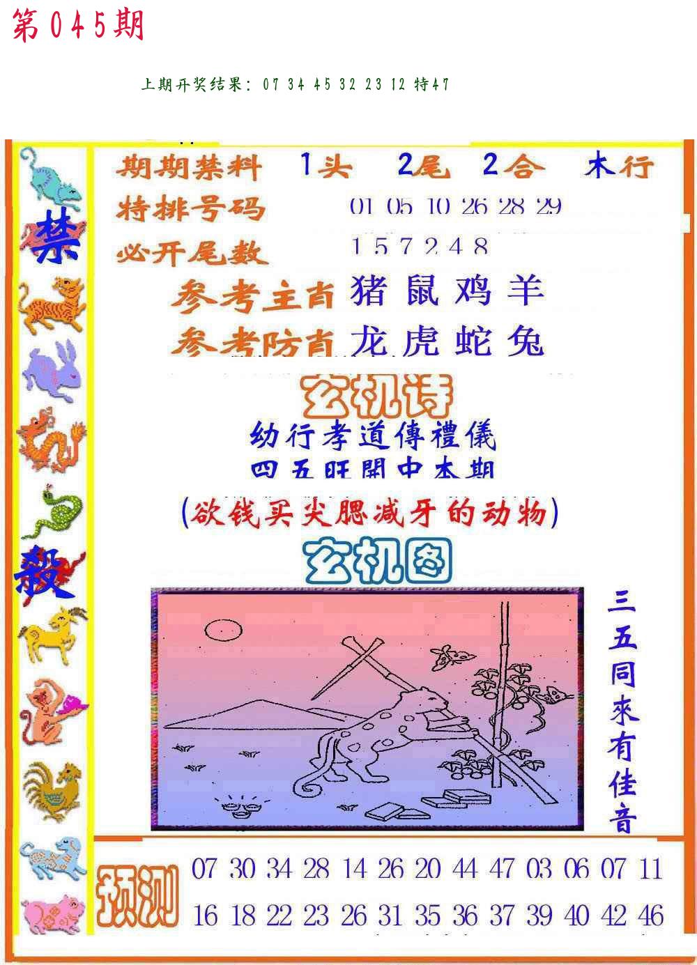 045期 家 【狗马猪】 野 【兔龙猴】开 ??????? |