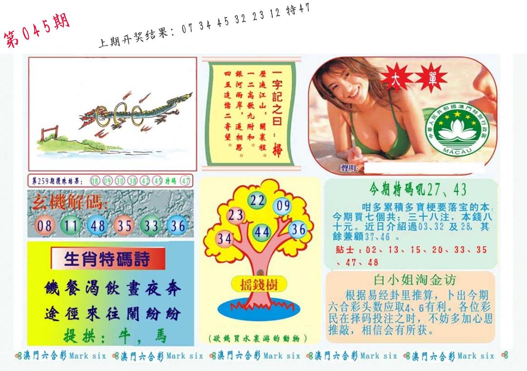 043期绝杀一波 【蓝波】 开 06鼠对 |