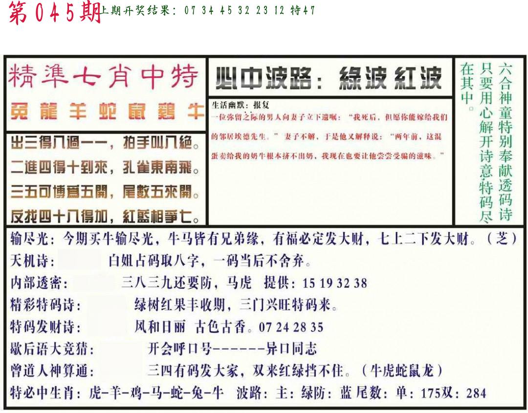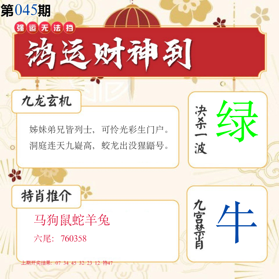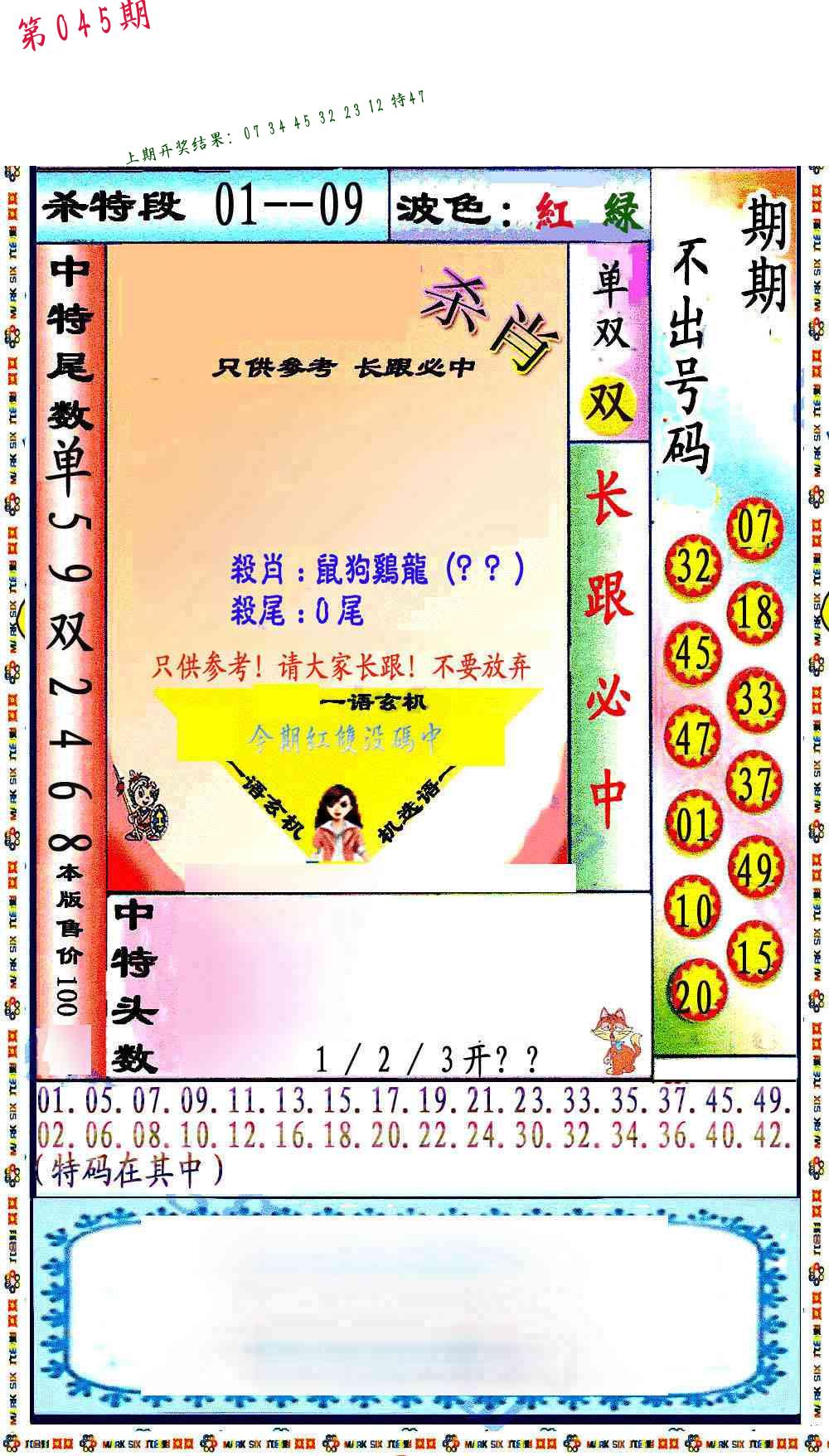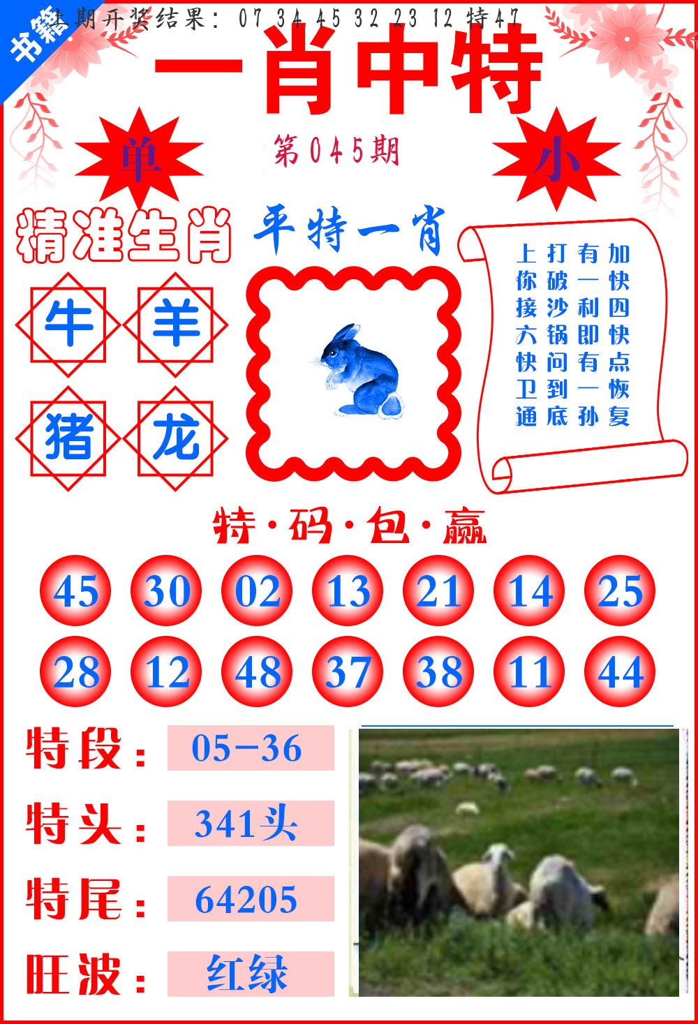045期绝杀1.肖1.尾 【牛肖7尾】 开 ??????? |
