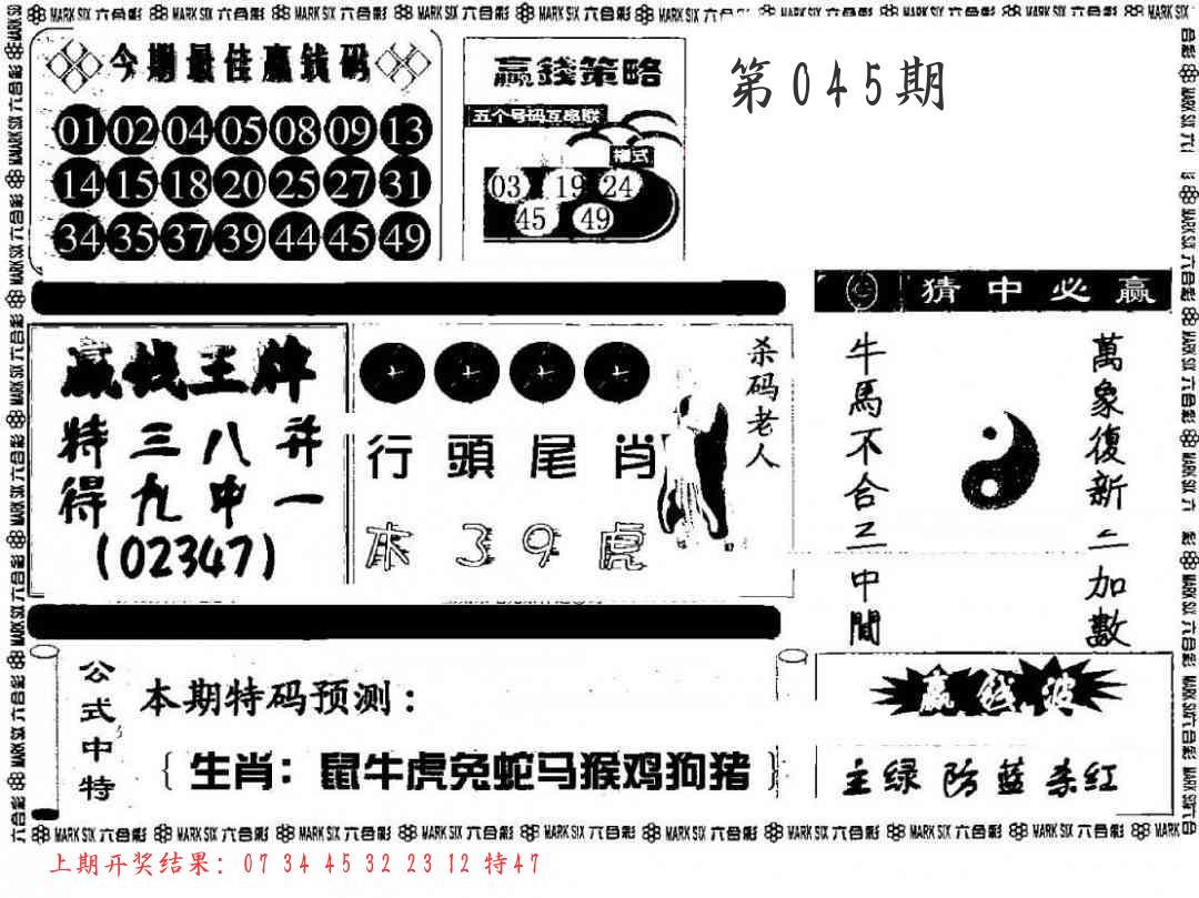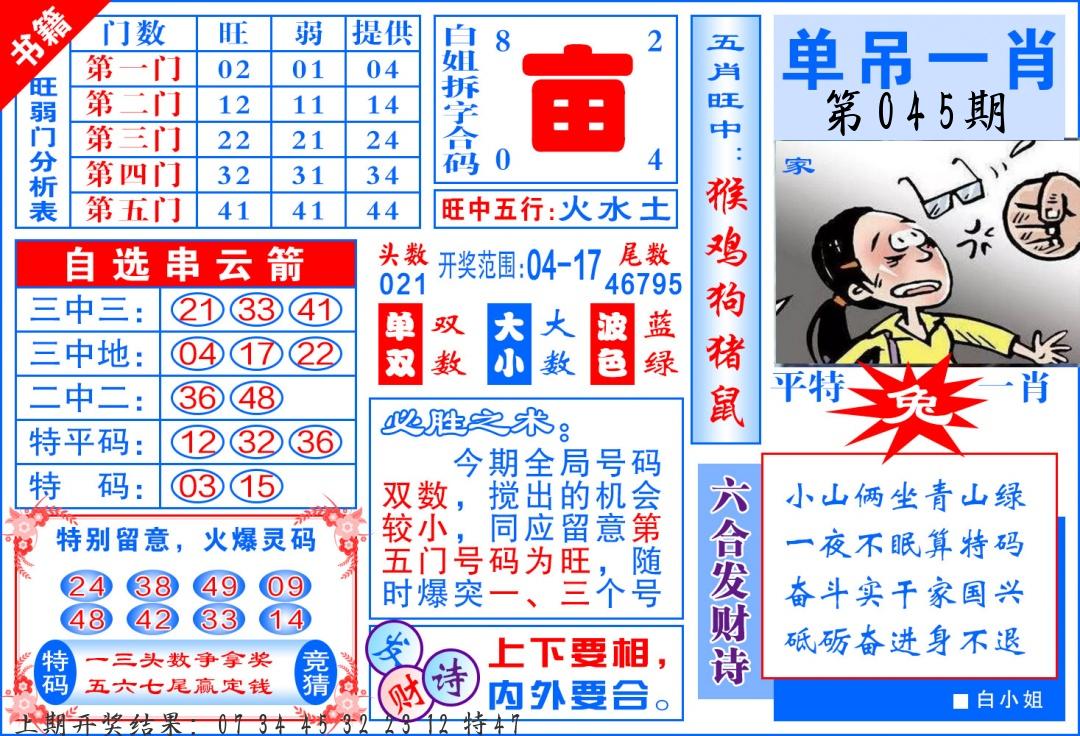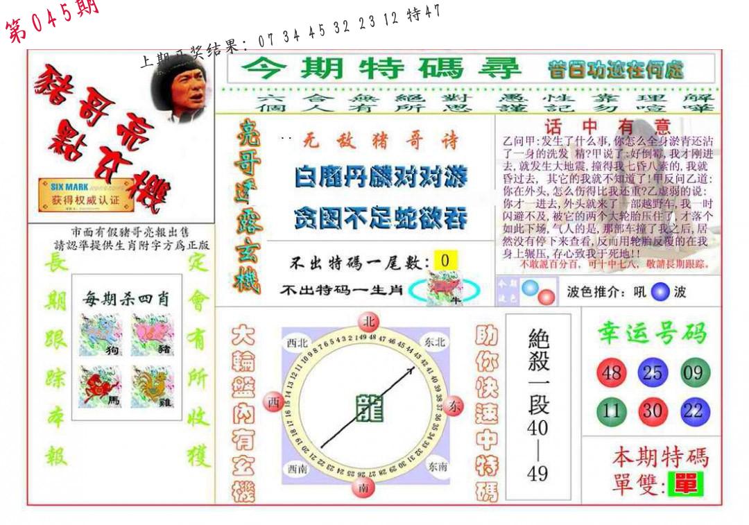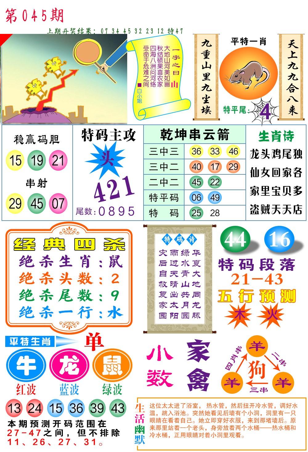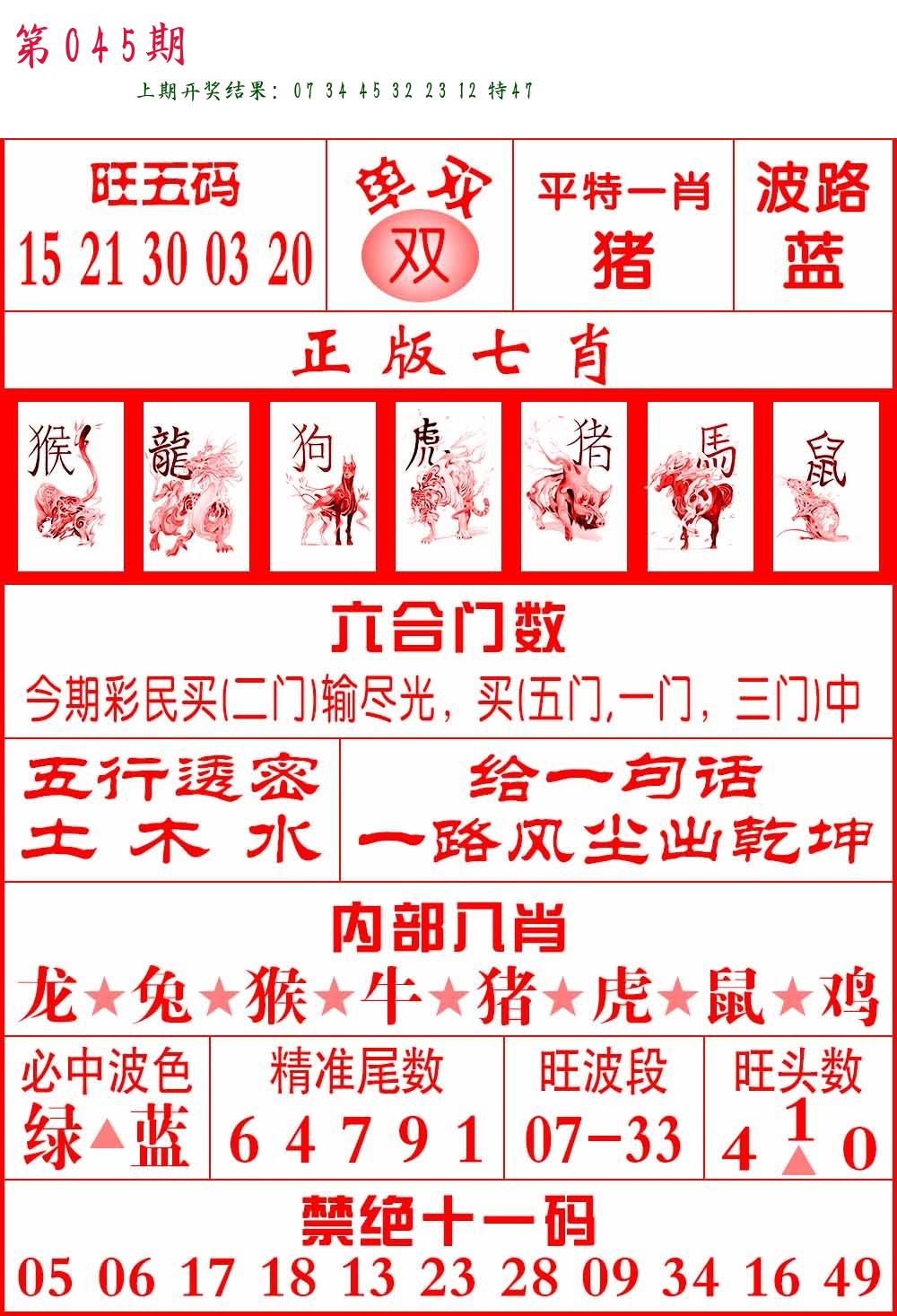 045期绝杀1.肖1.尾 【牛肖7尾】 开 ??????? |