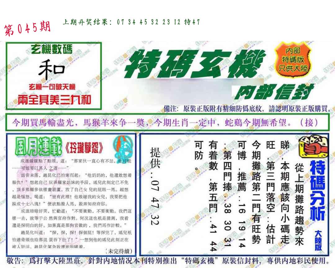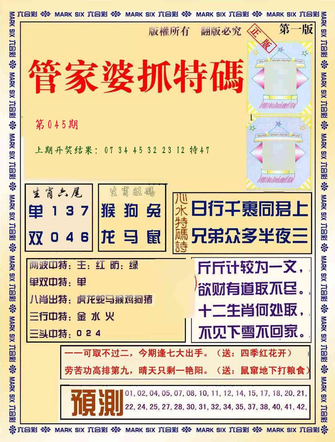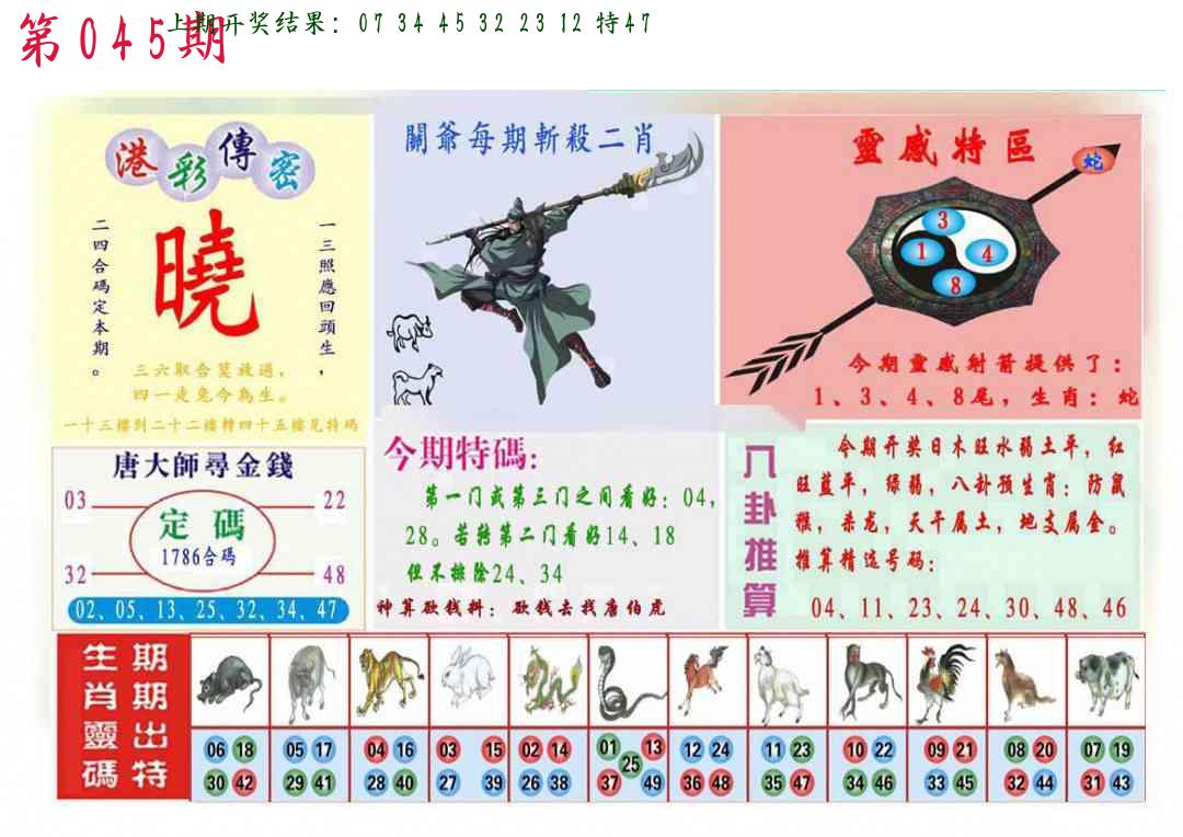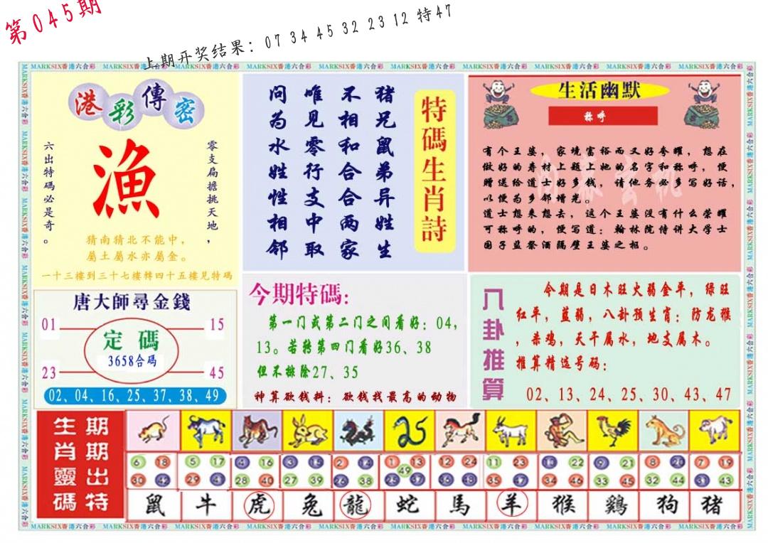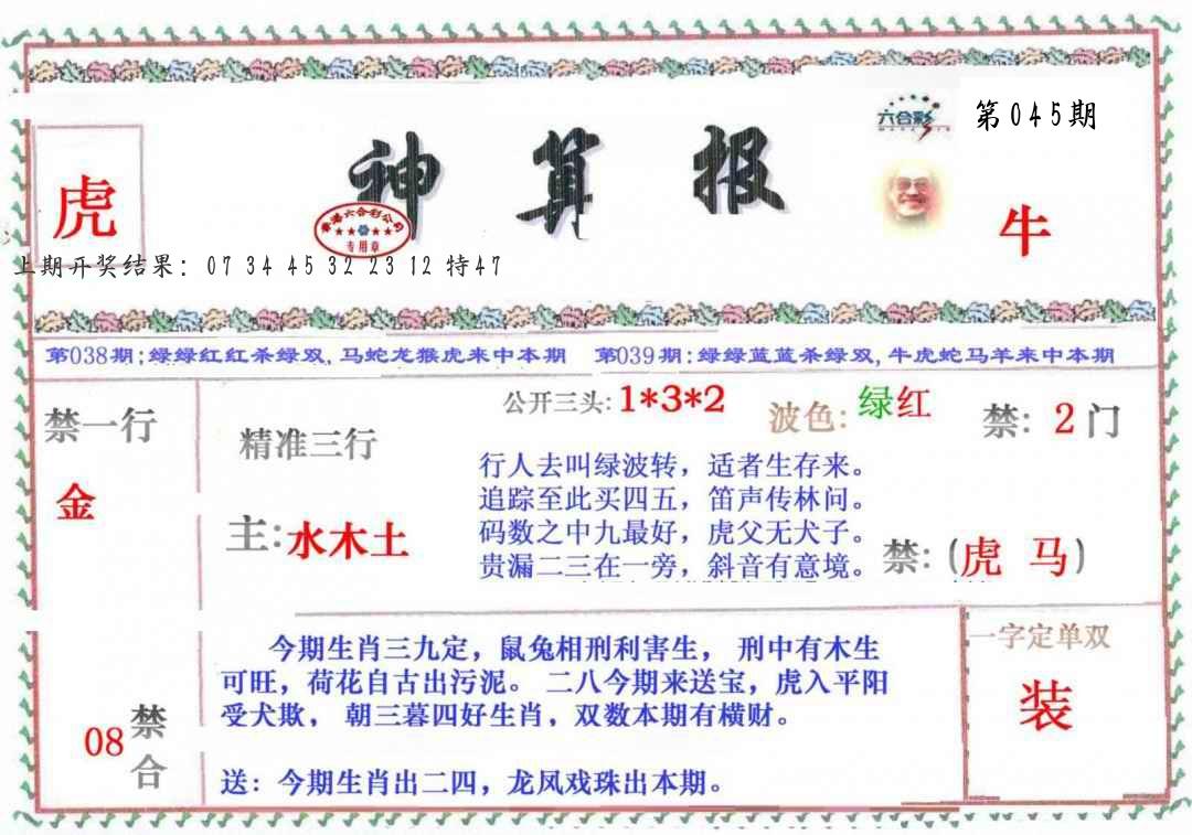 045期绝杀1.肖1.尾 【牛肖7尾】 开 ??????? |