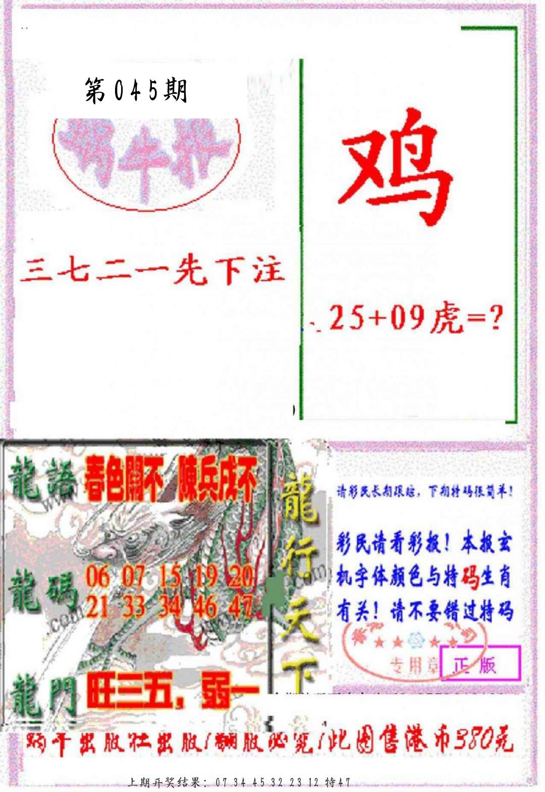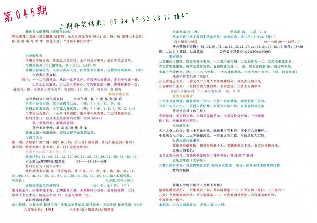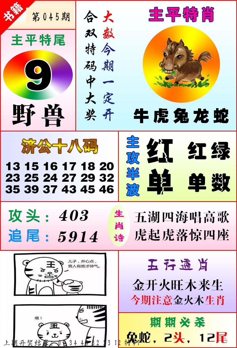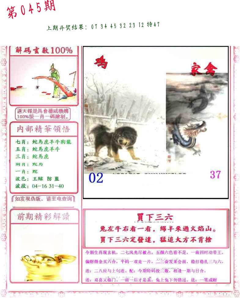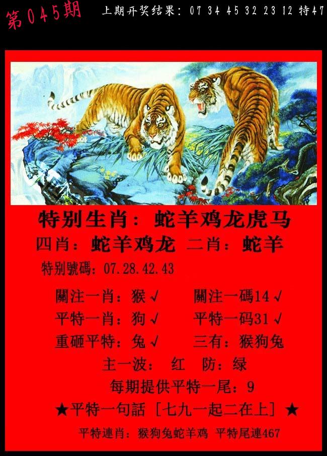 | 045期推荐五肖: 鸡牛兔虎龙 ~~稳准狠 |
