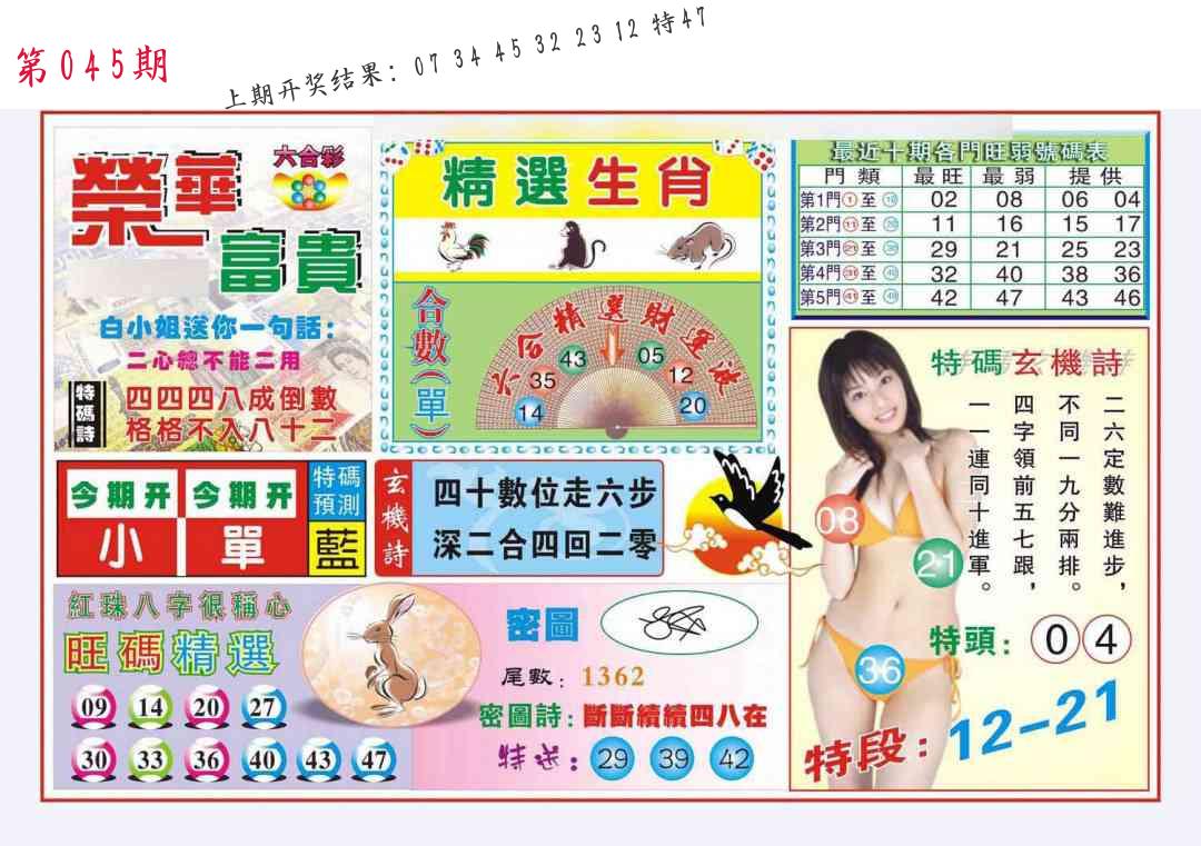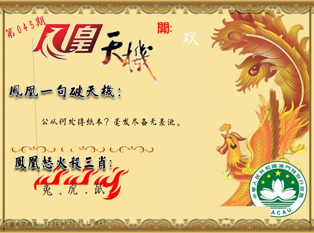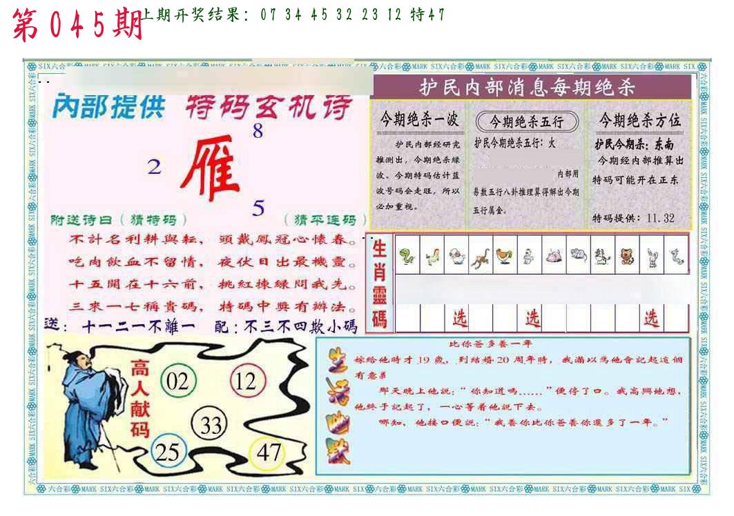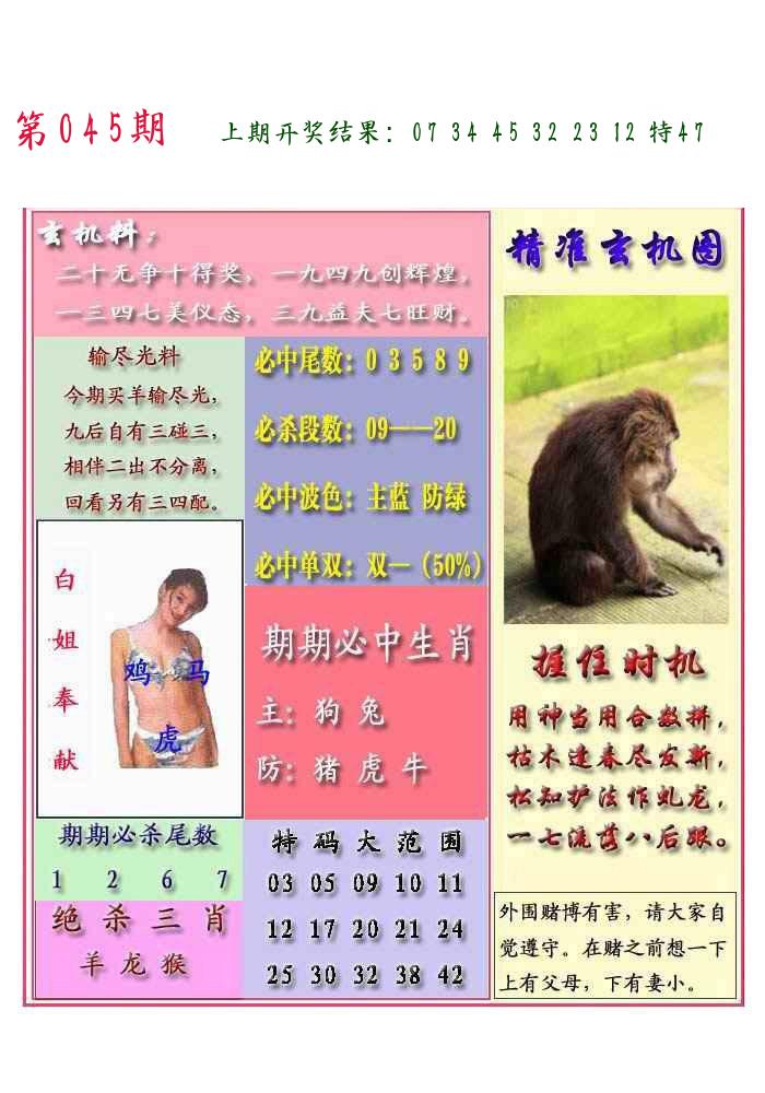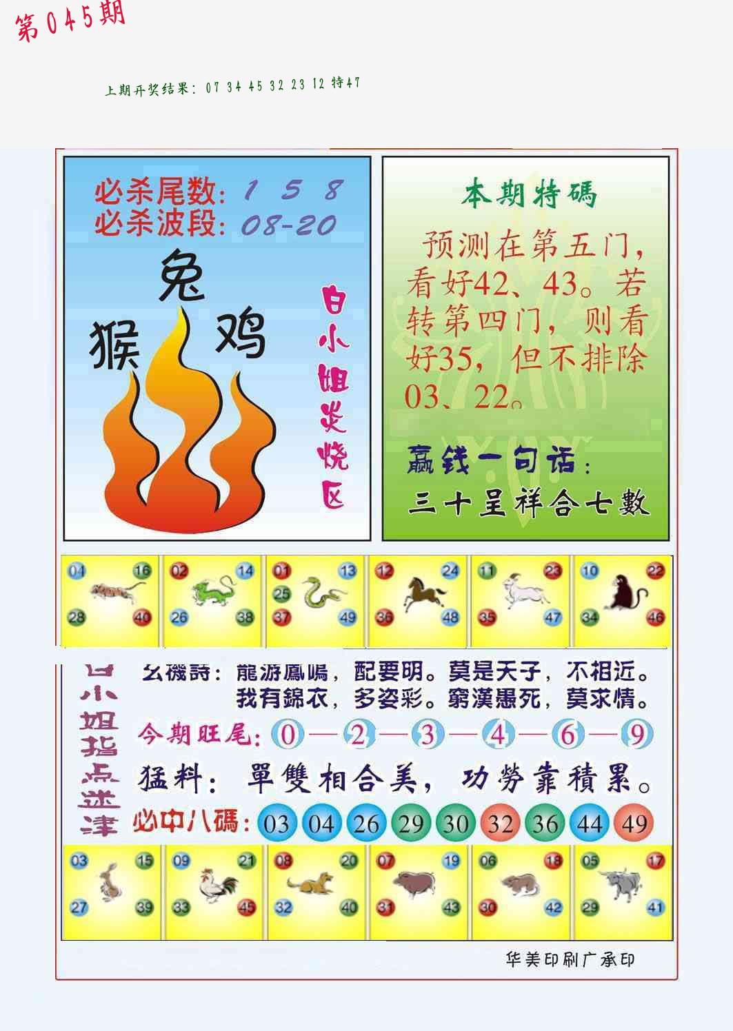| 045期推荐五肖: 鸡牛兔虎龙 ~~稳准狠 |
