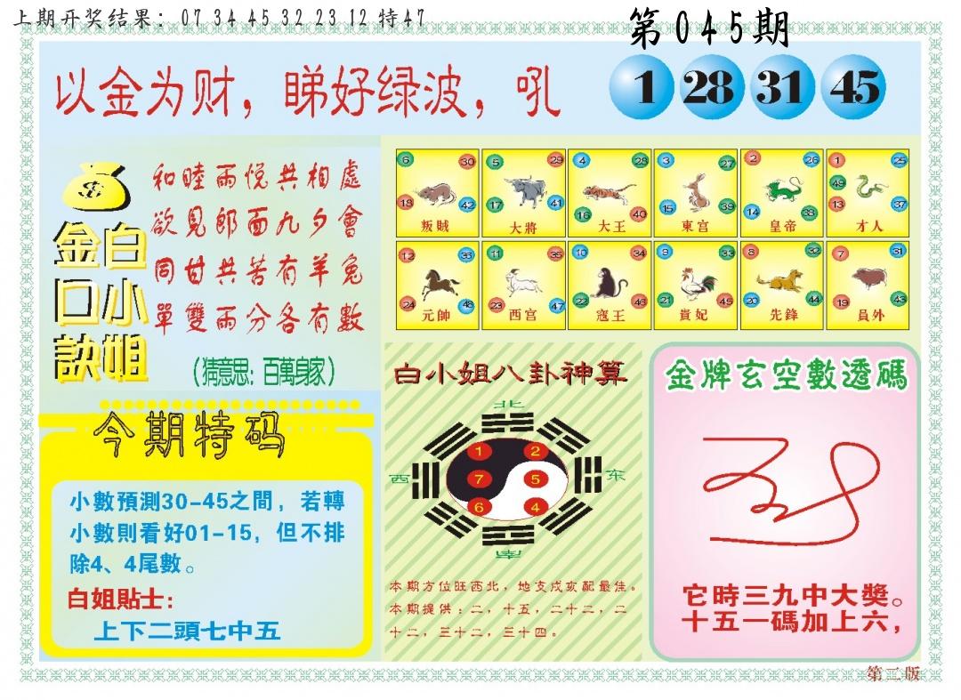 041期绝杀一波 【蓝波】 开 46猴对 |