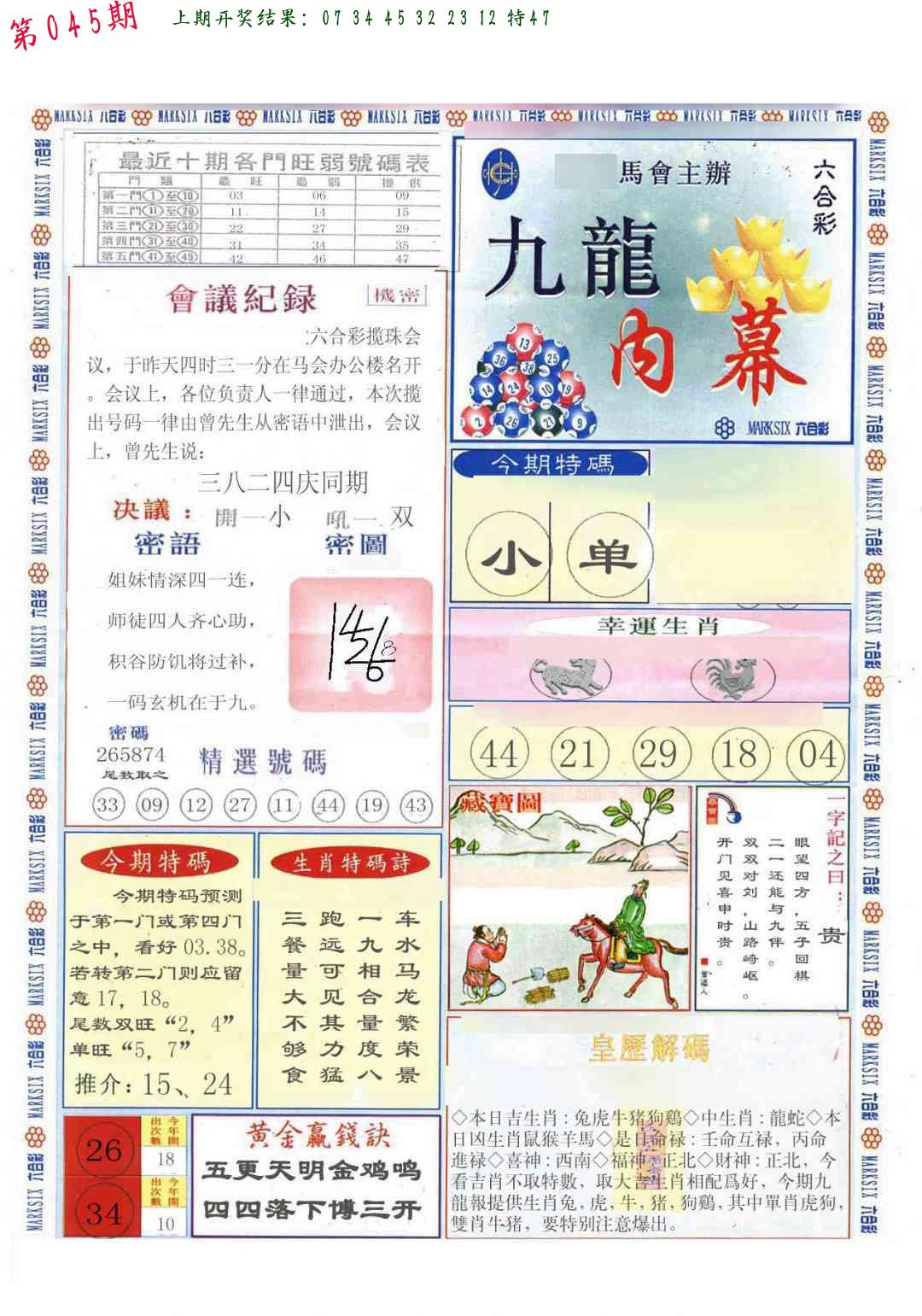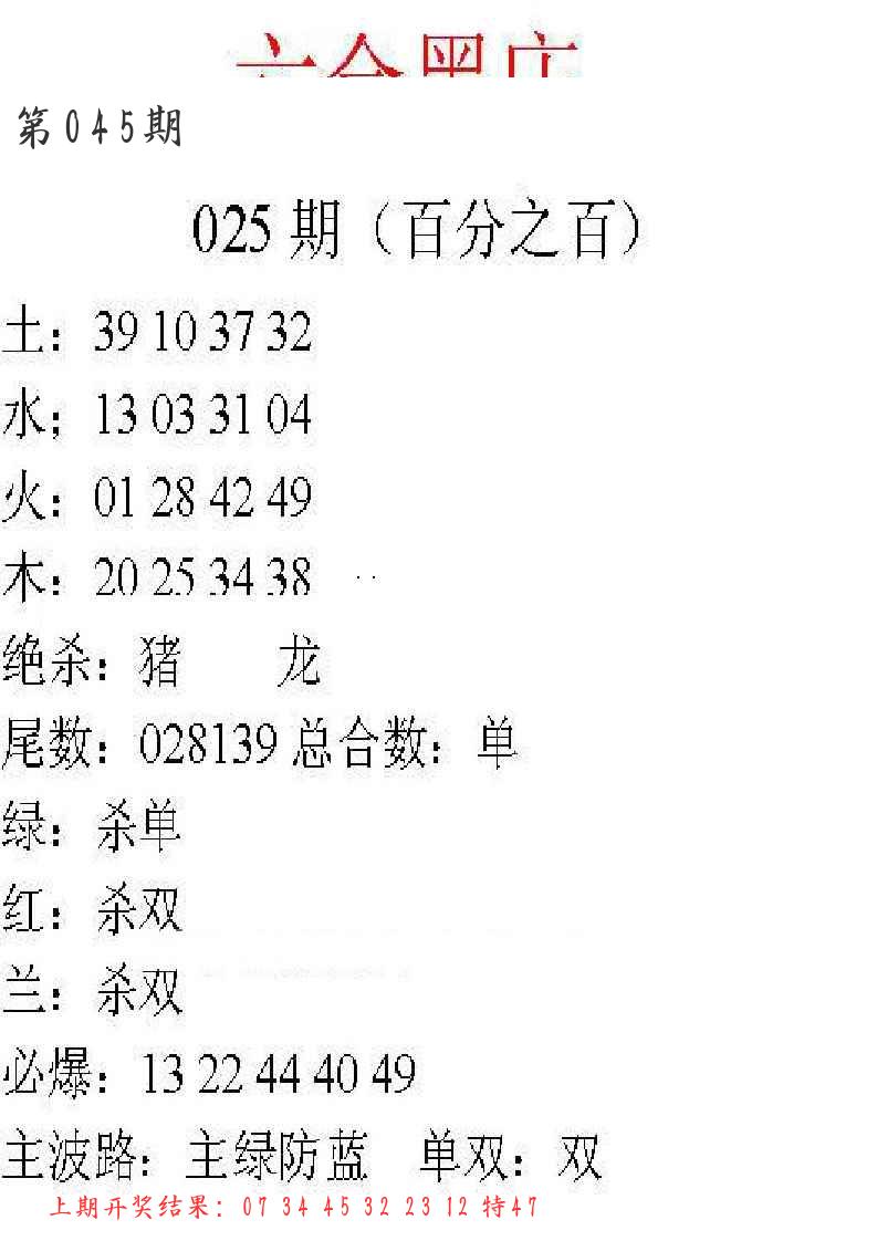 准确率高达90%,期期挑出12-18码 ____________★____________ 【九肖】 045期【牛猴狗马鼠兔猪龙虎】开????? 044期【蛇猴鸡兔马虎狗鼠牛】开47羊错 043期【鼠牛猪猴羊狗鸡蛇虎】开06鼠对 042期【鸡猴羊猪马鼠蛇龙虎】开25蛇对 041期【鸡羊虎马牛狗猪蛇鼠】开46猴错 040期【龙虎兔牛鸡马蛇羊狗】开09鸡对 039期【羊龙虎猴鸡鼠马兔蛇】开10猴对 038期【狗兔马龙羊蛇猴猪鸡】开05牛错 ____________★____________ 【四头】 045期【1-3-4-0】开?????? 044期【2-4-1-0】开47羊对 043期【2-4-3-0】开06鼠对 042期【0-2-3-4】开25蛇对 041期【4-3-0-2】开46猴对 040期【2-1-3-0】开09鸡对 039期【3-4-1-2】开10猴对 038期【4-3-2-1】开05牛错 ____________★____________ 【四行】 045期【金-火-水-土】开?????? 044期【水-木-火-土】开47羊对 043期【金-火-水-土】开06鼠对 042期【木-土-水-火】开25蛇错 041期【金-土-木-水】开46猴对 040期【木-土-水-金】开09鸡错 039期【水-木-金-土】开10猴错 038期【水-金-土-木】开05牛对 ____________★____________ 【七尾】 045期【1-0-9-7-3-8-5】开????? 044期【7-6-2-3-9-5-8】开47羊对 043期【1-4-3-6-9-0-5】开06鼠对 042期【4-2-3-8-1-6-7】开25蛇错 041期【7-8-2-4-5-6-0】开46猴对 040期【4-9-6-3-7-0-8】开09鸡对 039期【8-2-5-0-7-1-4】开10猴对 038期【6-5-8-1-2-0-4】开05牛对 ____________★____________ 【双波】 045期【蓝波+红波】开????? 044期【红波+蓝波】开47羊对 043期【绿波+红波】开06鼠对 042期【红波+绿波】开25蛇错 041期【绿波+蓝波】开46猴错 040期【蓝波+红波】开09鸡对 039期【绿波+红波】开10猴错 038期【绿波+红波】开05牛对 ____________★____________ |
