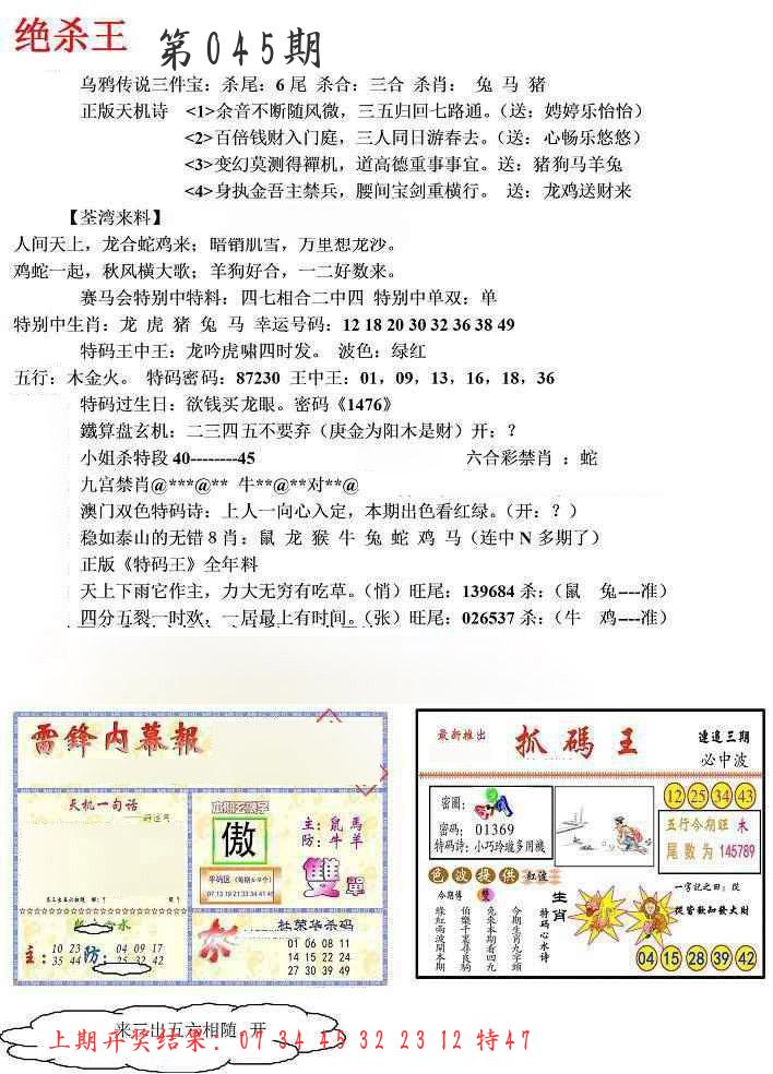 043期绝杀一波 【蓝波】 开 06鼠对 |
