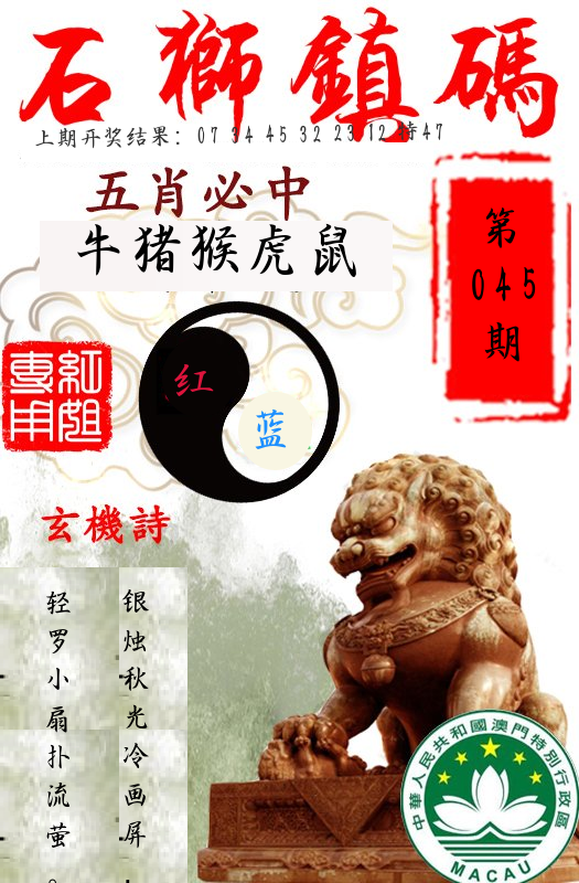 | 039期推荐五肖: 狗猴猪马牛 ~~稳准狠 |
