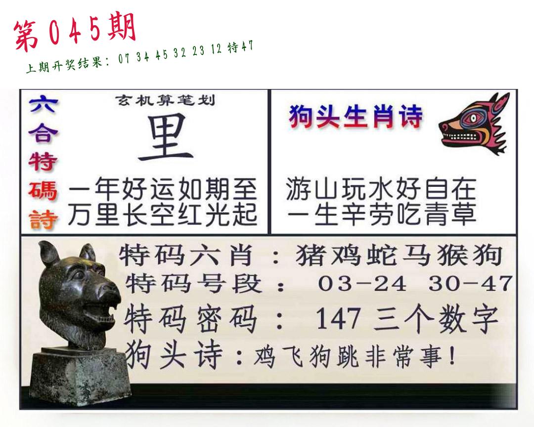 045期 家 【狗马猪】 野 【兔龙猴】开 ??????? |